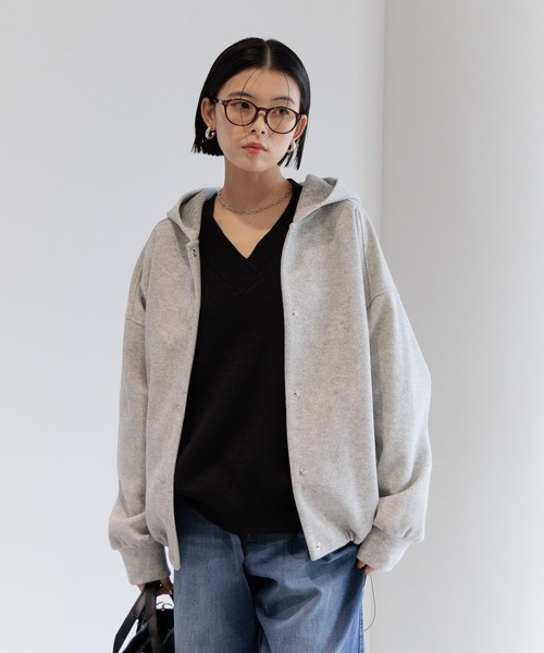 丸みのあるシルエットとフーディーデザインが今季らしいウーリーパーカー ーーー ★おすすめポイント★ [1]程よいハリ感のあるウールライク素材 [2]袖と裾の丸みのあるデザイン [3]スナップボタンで脱ぎ着が楽ちん [4]裾にドロストコード付き ーーー [fabric] きれいな丸みシルエットが出せる、程よいハリ感のあるウールライク素材を使用。 性質の異なる素材を表裏で張り合わせており、裏面は重ね着しやすいつるっとした素材感に。 [design] 袖部分と裾部分に丸みのあるシルエットがポイント。 トレンドのフーディーをアウターに落とし込んだデザインで、フロント部分がスナップボタンになっており、脱ぎ着がしやすい仕様に。 ドロストコード付きで裾のシルエットの変えて楽しめるデザイン。 [styling] ALLアイテムとコーデ可能。 ゆったりめのデザインなので厚めのニットやスウェットも着用可能。 ※屋外での撮影画像は光の加減で実際の商品より明るく見えたり、風合いが異なって見える場合がございます。 商品の色味はスタジオ撮影の画像を参考にして下さい。 ------------------------------------- ≪お買い物をよりお楽しみいただくために≫ ◆商品のお気に入り登録(ハートマークをクリック) 完売カラーの再入荷通知や、完売間近の通知、セールの通知も受けることができます。 ◆ブランドのお気に入り登録 新商品や再入荷など、いち早くブランドのお得な情報を受け取ることができます。 -------------------------------------