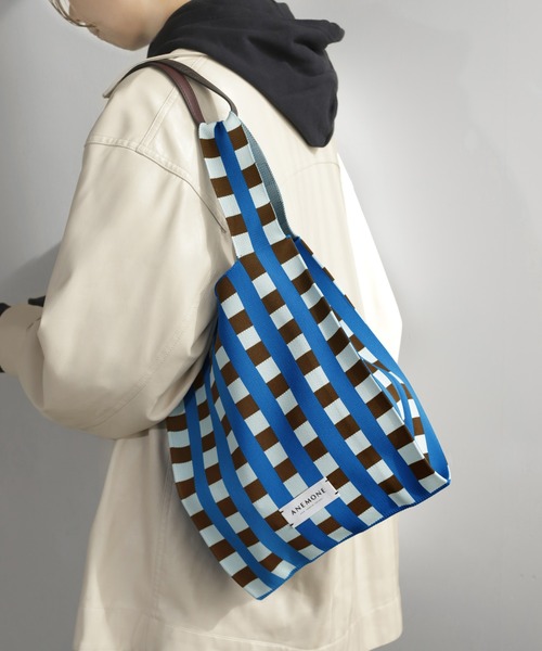 カラフルな配色のチェック柄が、コーデに華やぎをプラスするニットトートバッグ。タイトでスタイリッシュなフォルムは物を入れるとほどよく膨らみ、より一層おしゃれなシルエットに。装飾や金具の部品がないため、軽く持てるのも嬉しいポイントです。コンパクトに畳めるので、ちょっとしたお買い物のサブバッグや毎日持ち運ぶお弁当バッグとしても便利な、魅力たっぷりのアイテムです。※ATTENTION※■微細なキズや製造ムラはすべての商品に含まれます。