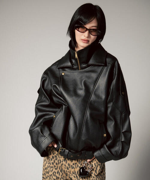 上品なツヤとリアルレザーのような質感が魅力のフェイクレザージャケット。 柔らかくしなやかな素材で、見た目以上に軽くて着心地がいい1枚。 今シーズンらしいオーバーサイズシルエットで、肩の落ち感や丸みのあるフォルムがこなれた印象に。 首元はトレンドのスタンドカラーで、ジップの開け方次第で顔まわりの雰囲気を自由に調整できます。 フロントのスナップボタンやベルトディテールがアクセントになり、モードにもストリートにもハマる万能アウターです。 MITSUKI/ミツキ ブランド名: 外来語ネーミングが主となる日本で 繕うでもなく日本ならではの呼び名を。 紛れもなく全員が持つもの。 ブランドコンセプト:公衆電話機がARTのように存在する今。 そんな感覚や違和感が名前にも存在する。 まるでスナックのような、日常であり異世界。 ファッションとの掛け合わせが 名状し難い妖艶さを演出してくれるブランドです。 【お買いものをお楽しみいただく為に!】 ▼商品のお気に入り登録 完売カラーの再入荷通知や、ラスト1点の通知、セールの通知も受け取ることができます。 ▼ブランドのお気に入り登録 新商品や再入荷など、いち早くブランドのお得な情報を受け取ることができます。