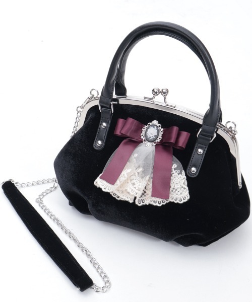 【アイテム説明】【商品紹介】カメオリボンがポイントのクラシカルながま口バッグです。【デザイン】やわらかな手触りのベロア生地を使用した、高級感漂うアイテム。コロンとしたフォルムが愛らしく、華やかなカメオリボンと繊細なレースがフロントを飾ります。ワンタッチで開閉できるがま口仕様です。口が大きく開くので、中身の確認や物の出し入れがしやすく便利◎マチが広く奥行きもあるため、収納力も抜群です。付属のベルトを使って、ショルダーバッグとして使用することも可能です。▽ axes femme * アクシーズファム【Concept】axes femmeのお洋服であなたのライフスタイルにほんの少しだけ彩る花が咲きますように。ブランドを通して、彩る花たちが、人と人、お客様や作り手たちの想いが世界中に繋がっていきますように。ベル・エポック(フランスの古き良き時代)にパリジェンヌたちが愛したファッションや文化にルーツをおき、独自のフェミニンスタイルを楽しむブランド**********************.。.: お気に入り登録のおすすめ :.。.∇気になるアイテムを登録∇ハートをクリックしてお気に入りに登録すると完売カラーの再入荷やラスト1点の通知、セールの通知を受けとることができます。∇ブランドを登録∇新商品や再入荷、セール通知など、いち早くブランドの情報を受けとることができます。是非ご利用頂き、お買い物をお楽しみ下さい。.。.: 商品について :.。.・サイト上のカラー名と、お届け商品に記載されているカラー名が異なる場合がございます。・商品の色味は、撮影場所や光のあたり具合、お客様のお使いのPCのモニター環境などにより色味が違って見える場合がございます。予めご了承の上ご注文下さい。.。.: 返品・キャンセルについて :.。.・着用、洗濯後の返品は致かねます。・商品到着後、着用前に商品を確認して頂きますようお願い致します。