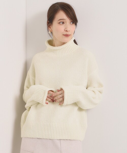 【デザイン】なめらかなタッチ感のベロアモールニット。しっかとした肉感で温かみのある着心地。昨年好調だったベロアモールニットが新色が加わり今期も登場♪ツヤ感のある滑らかな肌触りで秋冬らしい質感のベロアモール糸を使用。ラメを編み込んでいるのでさり気なくきらっと輝きます。襟ぐりと袖口のロール仕様がコロンと可愛いアクセント。リラックス感のあるオーバーサイズのカジュアル感が可愛いアイテム。【素材】滑らかなタッチ感のベロアモールニット。※照明の関係により、実際よりも色味が違って見える場合があります。また、パソコン・スマートフォンなどの環境により、若干製品と画像のカラーが異なる場合もございます。----------------------------------------★お気に入り登録がおすすめ★▽気になる商品はハートマークをクリック!・再入荷やセールの通知をお知らせ・お気に入り一覧からいつでもチェック▽ブランドのお気に入り登録も!・新商品やお得な情報をいち早くお知らせ----------------------------------------モデル情報:身長166cm B80 W59 H85 着用サイズ:00(フリーサイズ)店舗へのお問い合わせ商品番号:P93-14001●製品寸法:00(フリーサイズ):着丈53cm B114cm 袖丈50cm 肩幅53cm備考: