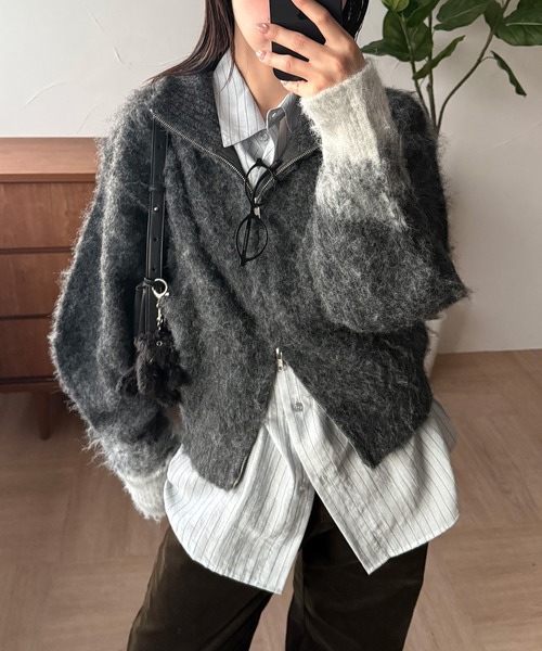 【MÜHE°T / ミュエータ】新作情報は公式アカウントからチェック!↓Instagram【@muhet_official】TikTok【@muhet_official】ーーーーーーーーーーーーーーーーー Design ーふわっと立体的なコクーンスリーブが特徴のジップニット。上下どちらからも開閉できるダブルジップ仕様で、シルエットの抜け感やインナーの見せ方を自在に調整可能。襟は立ててハイネック、折り返してショールカラー風と表情を変えられる2WAY。袖口に向かって淡く変化するグラデーションカラーが、シンプルなスタイリングに奥行きをプラス。程よいショート丈で、シャツ・タートルネックとのレイヤードが重たくならずバランスよく決まるデザイン。ー Fabric ー空気を含んだような軽さと柔らかさが魅力のシャギーニット素材。ー Styling ー白シャツをインして、ジップを少し開けると抜け感のある大人カジュアルに。タートルネックを仕込んで襟を立てれば暖かく、より冬らしいスタイルに。ボリュームのあるスリーブに対し、太めパンツやロングスカートを合わせるとバランスの良いシルエットに。ジップを下から開けて、インナーの色を見せればこなれたワンポイントに。シンプルなボトムでも存在感のある一枚なので、デイリーもお出かけも頼れる万能ニット。ーーーーーーーーーーーーーーーー透け感:なし裏 地:なし伸縮性:あり光沢感:なし生地の厚さ:普通ーーーーーーーーーーーーーーーー・・・MÜHE°T brand concept ・・・2025.2.21(Fri) REBRANDIG OPEN《WEB限定》ブランド- 無理なく美しく楽しむ、大人の余裕. -※サイト上のカラー名と、お届け商品に記載されているカラー名が異なる場合がございます。※ご覧いただく環境により、実物と色味が異なって見える場合がございます。ご了承ください。【お買い物をよりお楽しみいただくために】▼商品のお気に入り登録(ハートマークをクリック)完売カラーの再入荷通知や、ラスト1点の通知、セールの通知も受けることができます。▼ブランドのお気に入り登録新商品や再入荷など、いち早くブランドのお得な情報を受け取ることができます。