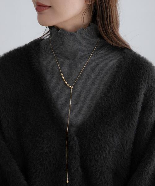 華奢なデザインのロングネックレス。ボールモチーフ部分につながるチェーンで長さの調整ができ、合わせるお洋服とのバランスによって見え方を変えることができます。【2025 Autumn/Winter】【25AW】総重量 : 約5g※商品画像は、光の当たり具合やパソコンなどの閲覧環境により、実際の色味と異なって見える場合がございます。予めご了承ください。※商品の色味の目安は、商品単体の画像をご参照ください。▼お気に入り登録のおすすめ▼お気に入り登録された商品は、マイページにて現在の価格情報や在庫状況の確認が可能です。お買い物リストの管理にぜひご利用ください。one