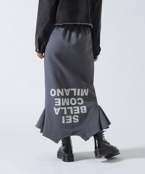 スウェット生地でラフに穿ける、リメイク風プリントスカート。フロントには大胆なロゴプリント、バックにはナンバリングを施し、古着のような風合いを楽しめるデザインが魅力。裾はランダムにカットされた切りっぱなし風デザインで、歩くたびにゆれるフレアシルエットがスタイルに抜け感をプラス。ウエストは総ゴムで穿き心地も抜群。カジュアルにもストリートにも合わせやすい、個性派の1枚です。MITSUKI/ミツキブランド名: 外来語ネーミングが主となる日本で 繕うでもなく日本ならではの呼び名を。 紛れもなく全員が持つもの。ブランドコンセプト:公衆電話機がARTのように存在する今。 そんな感覚や違和感が名前にも存在する。 まるでスナックのような、日常であり異世界。 ファッションとの掛け合わせが 名状し難い妖艶さを演出してくれるブランドです。【お買いものをお楽しみいただく為に!】 ▼商品のお気に入り登録 完売カラーの再入荷通知や、ラスト1点の通知、セールの通知も受け取ることができます。 ▼ブランドのお気に入り登録 新商品や再入荷など、いち早くブランドのお得な情報を受け取ることができます。
