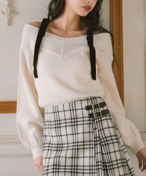 ■女性らしく着れるホリデーニット■冬ムードたっぷりなベロアリボンがワンポイントなニット。オフショルで女性らしさもプラス。グッと肩が見えるデザインのニットは着るだけで女性らしさ満点。あえて肩を出すことで華奢見えにも。肩部分はリブデザインになっていてより着やせして見せてくれます。ベロアリボンは最初から形作られているので崩れたりしないのが嬉しいポイント。オフショルでも落ちてこない作りに。デニムやスカート、スラックスなどどんなボトムスとも相性のいいニットです。ーーーーーーーーーーーーーーー透け感:なし裏地:なし伸縮性:あり光沢感:なし生地厚さ:普通洗濯方法:手洗い推奨※詳しいお手入れ方法は商品についているタグをご覧くださいーーーーーーーーーーーーーーー※ご利用のモニター環境により、実際の色味と多少異なる場合がございます。… information … 欲しいitemをお気に入り登録(♡マークをclick) ・お買いのがし対策…完売itemの再入荷やラスト1点の情報をお知らせ ・欲しいitemをお得にget…price downになったらいち早くお知らせ ・スムーズ検索…ZOZOのお気に入りアイテムページで簡単checkできるから、再検索不要♪