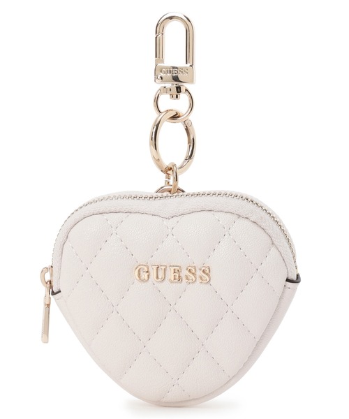 キルティング生地で仕立てられたハート形のデザインがキュートなポーチ。フロントと金具部分に描かれたブランドロゴがさりげないワンポイントになります。貴重品やイヤホンを収納するのに大活躍。お手持ちのバッグのアクセントとしてもお使いいただけるアイテムです。