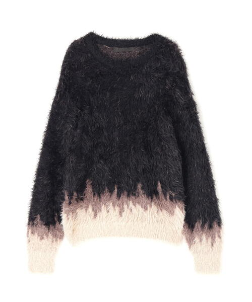 DankeSchon 毛足の長いシャギー素材を使用した独特な質感とインパクトあるビジュアルが魅力のプルオーバーニット。 大胆な切り替え配色がまるでグラデーションのように裾から立ち上がる個性的なデザイン。 軽量で柔らかく、暖かみのある着心地が特徴でスタイリングの主役としても活躍します。 モードとストリートを掛け合わせたような存在感があり秋冬のレイヤードスタイルに抜群のアクセントを加えます。 ■POINT トレンド感のあるロングシャギー素材を採用 裾周りに施されたグラデーション風の切り替えデザイン オーバーサイズシルエットでリラックス感のある着用感 軽くて柔らかい、ストレスフリーな着心地 ベージュ/ブルーの2色展開で選べるスタイリング ■STYLE TIP シンプルなワイドパンツやデニムと合わせるだけで、即トレンドライクなコーディネートに。 レザー系のボトムスやスラックスと合わせてモード寄りに振るのもおすすめ。 インナーにタートルネックを忍ばせたスタイリングや、シャツをレイヤードして襟を覗かせることで異素材ミックスの面白さも引き立ちます。 アウターから裾の切り替え部分を覗かせる着こなしも◎。 ただの「ふわふわニット」では終わらない、Dankeschonらしいエッジの効いた切り替えデザインが光る一枚。 見る角度や動きによって表情を変えるシャギーの質感は、着る人の個性を際立たせてくれます。 性別問わずユニセックスで楽しめる、主役級のファーニットです。 DankeSchon・・・DankeSchonとは、このブランドの核となるキーワード D digitaliyデジタル式 A Architect創造者 N neologism新表現 K kittenish悪ふざけ E engrossing心を奪う の頭文字を組み合わせたものにドイツ語のSchonを付け、ブランドの意図に賛同してくれる人達に感謝の意味を込め、「DankeSchon(ありがとうの意味)」としている。