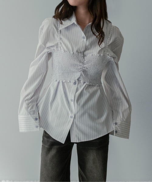 ![on:nue(オンニュ)の「【on:nue】[着用動画あり!/3way仕様] シャツ×ビスチェ レイヤードストライプシャツ(シャツ/ブラウス・レディース・ブルー/ホワイト・FREE)」の15枚目の写真](https://c.imgz.jp/343/100487343/100487343b_b_14_500.jpg)