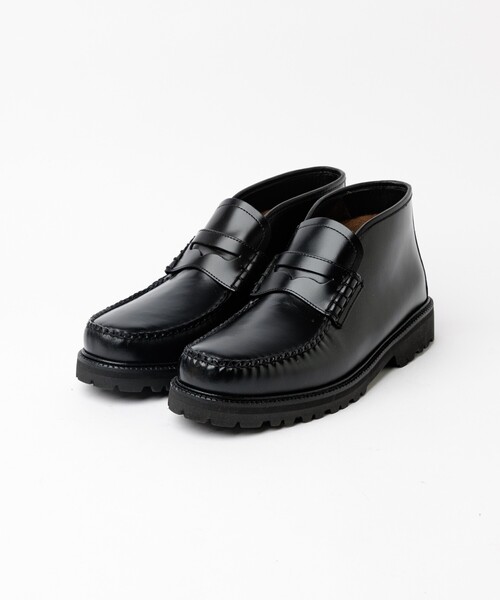 定番モデルのLARSONをベースに、ミドル丈のブーツにアレンジ。 サドル(甲部分のあて革)の両端をモカ縫い部分で巻き留めた特徴的なデザインはビーフロールと呼ばれる、ローファーのアイコン。 ハイシャインレザーの艶やかな光沢は、まさに代名詞と呼ぶに相応しい佇まいさらにレザーソールに代わってエクストラライトという軽量かつボリュームのあるラグソールを採用。 クッション性にも優れ、快適な歩行をサポートしてくれます。 シンプルながらも存在感があり、デニムパンツやカーゴパンツからスラックスまで幅広く合わせられる汎用性の高いアイテムです。 【G.H.BASS /ジーエイチバス】 1876年にアメリカで誕生したG.H.BASSは、ローファーを生んだブランドとして広く知られています。 そして、その存在はローファーの代名詞といっても過言ではありません。 マッケイ製法で作られたローファーは軽量で、高い屈曲性が大きな利点です。