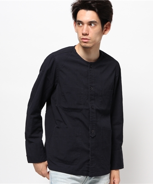 【Ciaopanic】 ノーカラーフレンチワークジャケット フレンチシックなカジュアルスタイルを目指すなら、ノーカラーのワークジャケットがおすすめ。くったりとしたヴィンテージ感のある風合いで、ぐっとこなれたイメージに。さっと羽織れる軽い着心地なので、季節の変わり目に重宝。前ボタンを閉めれば、プルオーバー風にも着こなせます。