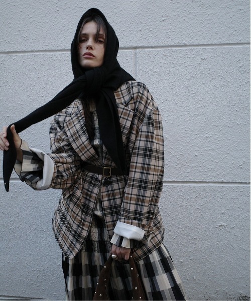 2025 Autumn&Winter Collectionフェイクレザーバルーンジャケットオーバーサイズのテーラードジャケット。2023年秋冬に好評いただいた同型ジャケットから、新色でCHECKが登場。通常のジャケットシルエットに加え、左外脇に釦、右脇の内側に施したタブと釦ホールを留めることでウエストをシェイプした女性らしいシルエットでの着こなしが可能です。ラペルにも釦とホールを施しているので、襟を立てて違った印象の着こなしも楽しめます。袖は腕を通しやすいように滑らかな裏地を使い、袖口には折り返した時にコットンの裏地が見えるように切り替えているので、袖を折り返した着方もおすすめです。生地には膨らみのある太番手のウーリー糸を横糸に使用し、しっかりとした質感ながら軽さのある日本製素材を採用。CHECK生地は、タテ糸とヨコ糸を均等に浮かせる綾織りで仕上げることで、配色のチェック柄を美しくバランス良く表現。ポリウレタンに比べて劣化しにくく、適度な膨らみと伸縮性を長く保つ高伸縮糸「ポリーナ」を使用するなど、細部までこだわり抜いた一着です。---------------------------裏地:ありストレッチ:なし透け感:なし---------------------------※光の当たり具合や端末等の閲覧環境によって、実際の色味と異なって見える場合がございます。予めご了承ください。※表記サイズは商品の実寸で、布製品の特性上、表記サイズと多少の誤差が生じる場合がございます。※画像の商品はサンプルの為、実際の商品と色味、仕様、加工、サイズ、素材等が若干異なる場合がございます。