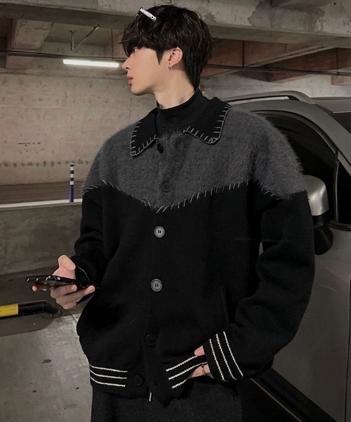 ■detail温かみのあるニット素材と、異素材のシャギー切り替えが目を惹くニットジャケット。胸元から肩にかけて大胆に切り替えられたシャギー素材が、着こなしに華やかさと奥行きを与え、トレンド感のあるスタイルを演出します。配色ステッチがさりげないアクセントになり、シンプルながらも個性を感じさせるデザインです。程よくゆとりのあるルーズシルエットで、インナーにロンTやスウェットを重ねてもごわつかず、快適な着心地です。 ■coordinate・デニムパンツやチノパンと合わせて、カジュアルで抜け感のあるデイリースタイルに・スラックスやきれいめパンツと合わせて、モード感のある洗練された着こなしに・ハイネックのインナーと合わせれば、さらにこなれた雰囲気を演出できます。 【色展開】ブラック <着用レビュー>【スタッフA 168cm/55kg 普通体型】M:トレンド感のあるゆったりとしたシルエットで、中に厚手のトップスを着ても窮屈感がありません。 シャギーとステッチのデザインがとてもおしゃれです。 【スタッフB 175cm/65kg 細身体型】M:身幅にゆとりがあり、リラックスした着心地です。 異素材の組み合わせが新鮮で、一枚羽織るだけでコーディネートが完成します。 【スタッフC 180cm/72kg がっしり体型】M:肩周りや腕周りに余裕があるので、窮屈感なく着られました。 厚手のニットですが、着膨れしないすっきりとしたシルエットで気に入っています。 ▼POINT・ニットジャケット・ニット・シャギー・切り替え・配色・ステッチ ・アウター・ルーズシルエット・オーバーサイズ・ドロップショルダー・メンズ・ユニセックス・韓国ファッション・大人カジュアル ・着回し・デイリーユース・シンプル・リラックスフィット・モード・古着風 ・25AW・25秋冬・25秋服 ▼商品について▼※着用身長・体型によってイメージが異なる場合があります。※画像の商品はサンプルとなります。実際の商品と色味、仕様、加工、サイズ、素材等が若干異なる場合がございます。※商品の色味は、撮影場所や光のあたり具合、お使いの端末により色味が違って見える場合がございます。予めご了承の上ご注文下さい。 ▼お取り扱いについて▼※着用またはお取り扱いの際は、アテンションタグや洗濯ネームを必ずご確認ください。 《 お知らせ 》▼商品のお気に入り登録お気に入りアイテムの値下げ・再入荷・在庫1点などの通知を受け取ることができます。 ▼ブランドのお気に入り登録新商品や再入荷、セール、クーポン配布などお得な情報を受け取ることができます。※他のキャンペーンにより、期間中に価格が変動する場合があります。