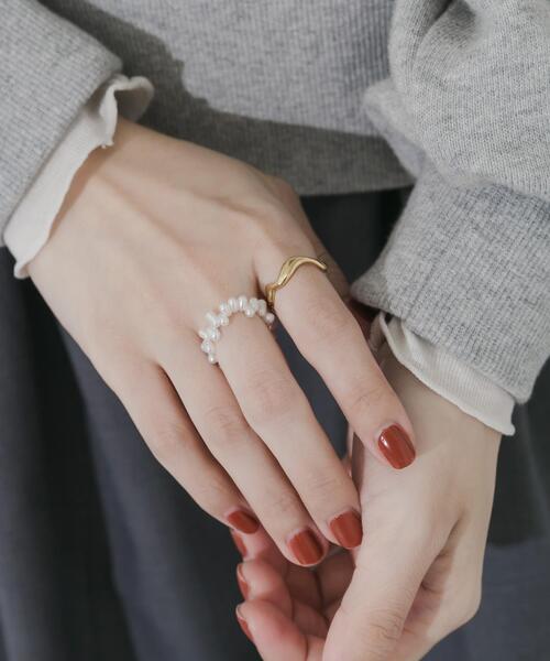 【手元に華やぎを添えるリングセット】●手元を優しく彩る、小粒パールの連なり●肌に優しく錆びにくいサージカルステンレス素材●重ね付けも単体使いも楽しめる2本セット繊細な小粒パールをつなげたリングと、滑らかなウェーブを描くゴールドリングのセットです。異素材の組み合わせが、手元にリズムと奥行きを生み出します。隣り合う指に着けたり、一本の指に重ねたりと、その日の気分でアレンジを楽しめます。腐食に強く錆びにくいサージカルステンレスを採用した、金属アレルギーにも対応したアクセサリーです。【2025 Autumn/Winter】【25AW】【サージカルステンレスとは・・】・通常のステンレス材よりも、より腐食に強く錆びにくい。・医療器具にも使用されており、金属アレルギーに対応した素材。・お風呂などの水に触れるシーンで付けっぱなしにしても、錆びたり変色したりしにくい。※アレルギーの原因はさまざまです。すべての方に起きないことをお約束するものではありませんので、予めご了承くださいませ。また、症状が出た場合は直ちに使用をお控えください。※アレルギー体質の方や体調が低下している方など、かぶれることがありますので十分にご注意ください。※サージカルステンレスは、腐食に強く錆びにくい特徴がございますが、製品状態を永久保証するものではございません。使用状況によって劣化は異なりますので、ご了承ください。※その他お取り扱いに関しましては、商品に付属のアテンションタグをご覧ください。総重量 : 約2gサイズ : 12号, 約11号(詳細商品画像の左から順に)※商品画像は、光の当たり具合やパソコンなどの閲覧環境により、実際の色味と異なって見える場合がございます。予めご了承ください。※商品の色味の目安は、商品単体の画像をご参照ください。▼お気に入り登録のおすすめ▼お気に入り登録商品は、マイページにて現在の価格情報や在庫状況の確認が可能です。お買い物リストの管理にぜひご利用下さい。-