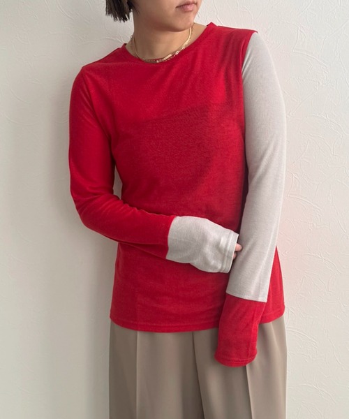 2026 Early Spring Collection メリハリあるバイカラーが主役のトップス 透けすぎない程よいシアーカンのリブ素材が大人の抜け感を演出してくれ バックのロゴがさりげないポイントになっています ジャストフィットなサイジングで華奢見えを叶えてくれます レイヤードスタイルに活躍してくれるアイテムです☆ --------------------------------- 洗 濯:手洗い 透け感:あり 裏 地:なし --------------------------------- ※撮影場所やイメージにより、実際の商品と色味が若干異なる場合がございます。 ※サイズに若干の個体差が生じる場合がございます。 予めご了承下さい。 【オススメの機能について】 《商品のお気に入り登録》により、完売カラーの再入荷通知、ラスト1点の通知、セールの通知も受け取ることができます! 《ブランドのお気に入り登録》により、新商品や再入荷など、イチ早くブランドのお得なセールやクーポン配布などの情報を受け取ることができます! お得な情報をGETして頂く為にも、是非ご活用くださいませ。 ※ご注文いただいた予約商品のお届け時期の確認は、注文履歴ページより行えます。