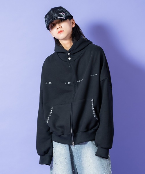 a.p.o.v. ネイティブスタッズデザインボリュームネックスウェットオーバーサイズジップアップパーカー / ユニセックス ZIPフーディー コットンスエット 定番かつマストアイテムのスウェットパーカー。ストリートライクに羽織れるジップアップスタイル&ダボっとしたオーバーサイズ/ビッグシルエットがメンズレディース問わずユニセックスで確実に取り入れておきたいアイテムの一つ。 ヘヴィーウェイトコットンスウェットの王道マテリアルをベースに、ネイティブ調の民族的な雰囲気かつ無機質なモード感を感じさせる胸元とカンガルーポケット淵にあしらった貼り付けのスタッズデザインがエレガント&グッドムード。90sの空気感を奏でるネイティブ×スタッズデザインながら、2ボタンでしっかりと立たせたボリュームたっぷりのスタンドネックフード、着こなしの幅を広げるダブルジップアップファスナーなど細部のギミックも世界間にしっかりとマッチ。ダボダボなオーバーサイジングを採用しつつ丈感はやや短めにとった今顔シルエットも完璧な主役トップス間違いなしの一着。韓国ストリートファッションをはじめとし、90s/Y2Kスタイル、古着ミックス、アメカジやワークスタイルなどのクラシックムードなスタイルはもちろん、スケーター、ストリートスタイル、グランジといったカジュアル全般、さらにはモードスタイルやキレイメなどのハズシアイテムやアクセントとしても◎ 『カラー』 ブラック / 黒 グレー / 灰色 【a.p.o.v. / エーピーオービー】 a point of view... [日本人の視点]からセレクトする『韓国ストリートファッション』がコンセプト。 韓国ストリートで日々更新されてゆくトレンドの移り変わりを眺めながらぼんやりと視点を合わせて国内外問わずにセレクト。 ぼーっと韓国ストリートシーンからインプット、日本人視点でアウトプット。