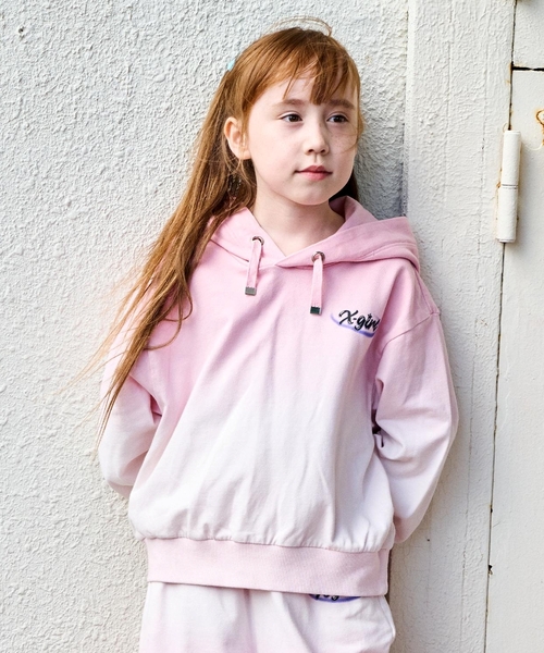 グラデーション染めが印象的な裏毛仕様のパーカです。絶妙な色変化がスタイリングにアクセントを添えます。胸元にあしらったロゴプリントも可愛いポイント。スウェットパンツ(品番:9254101)と合わせてセットアップコーデが叶います。内側にお名前を記入できるタグつき。関連品番:9254101【透け感】透けない【生地の厚さ】普通【伸縮性】あり【裏地】なし【ポケット】なし