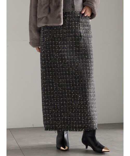 クラシカルな雰囲気漂う、ツイード素材のIラインスカート。表面感のあるチェック調のツイード生地が、シーズンムードを引き立てます。すっきりとしたIラインシルエットで大人っぽく仕上げながら、裾にはさりげないフリンジ加工を施し、抜け感をプラス。ウエスト位置を高めに設定しているので、スタイルアップ効果も期待できます。バックのウエストゴム仕様が程よいフィット感を実現。ブラウスやニットをインしてきれいめに、またカジュアルなトップスと合わせてデイリー使いにもおすすめ。シンプルながら存在感のある、シーズンライクな一枚です。【その他採寸】F ウエスト:[後ゴム仕様]66cm ※商品画像は、撮影環境やお客様のご利用のPC・スマートフォンのモニター環境などにより実物と色味に差異がある場合がございます。★《お気に入り登録》でお得な情報をGET★① 商品ページ内のハートマークをクリック!② 以下通知が受け取れます!「再入荷」「ラスト1点」「特別セール」etc..\ブランド、ショップのお気に入りも是非!/