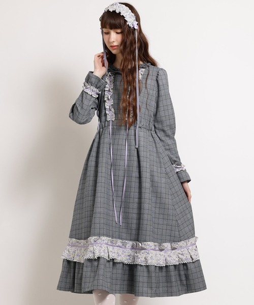 MILK 2025 Winter◾︎グレンチェック×小花柄のヴィンテージムード漂うロングドレス◾︎胸元から流れるリボンは結ばずにそのまま垂らすことで、アンティークドールのような上品な雰囲気を演出♪◾︎可憐な印象を与えてくれるレースとフリルもポイント◎♡ Colors ♡A,ブラウン/グレンチェックB,ブラック/グレンチェック♡ Size ♡身幅 46㎝ / 着丈 117㎝♡ おすすめのスタイリング ♡▪ローブ コート (code : 98714648)▪Brilliant ヘアピン set (code : 98714692)▪シャーリング ヘッドドレス (code : 98714693)