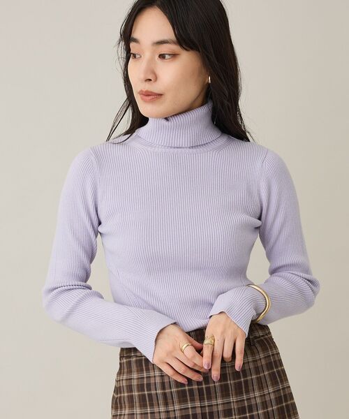 *リブタートルで着回しやすい、毎日の定番ニット。「包み込まれるようなもちっとした肌ざわり」レーヨンを中心にポリエステルやナイロンをブレンドした混紡糸を使用し、程よいストレッチ性としなやかな肌触りが特徴です。体に程よく沿うフィット感で窮屈さが少なく、ご家庭の洗濯機が使えてイージーケアなのも嬉しいポイント。季節の変わり目から冬まで長く活躍します。「シンプルな中に効くディテール」ウエストと袖口で編み方向を変えたさりげないディテールがシンプルな着こなしに表情を添えます。適度にフィットするシルエットはインナーとしても単品でも使いやすく、タートルネックながらもすっきりとした印象にまとまります。「ボトム次第で表情を変える万能トップス」ライトベージュ、ライトブルー、ライトパープル、ブラックのペールトーン中心の4色展開で、冬のコーデを明るく見せたい場面に最適。ジャンパースカートやシャツのイン、ワイドパンツやデザインスカートと合わせて大人カジュアルに仕上げてください。透け感[なし]生地の厚さ[普通]光沢感[なし]伸縮性[あり]裏地[なし]ポケット[なし]※モデル着用画像は、光の当たり具合で色味が違って見える場合がございます。※お使いのモニター環境によって商品の色味が違って見える場合がございます。 ̄ ̄ ̄ ̄ ̄ ̄ ̄ ̄ ̄ ̄ ̄ ̄ ̄ ̄ ̄ ̄ ̄ ̄ ̄▼商品のお気に入り登録がおすすめです ▼商品ページ内のハートマークをクリック。完売時の再入荷や、最後の1点の通知、最後の1点など、お得なお値下げ情報を受けとる事ができます。【お知らせ】ページでも通知が確認できます。 ̄ ̄ ̄ ̄ ̄ ̄ ̄ ̄ ̄ ̄ ̄ ̄ ̄ ̄ ̄ ̄ ̄ ̄ ̄