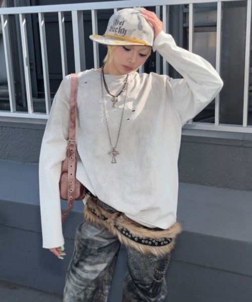 【Never mind the XU】damage washed long sleeve / 【ネバーマインド ザ エックスユー】ダメージウォッシュ長袖Tシャツ <着用動画あり>