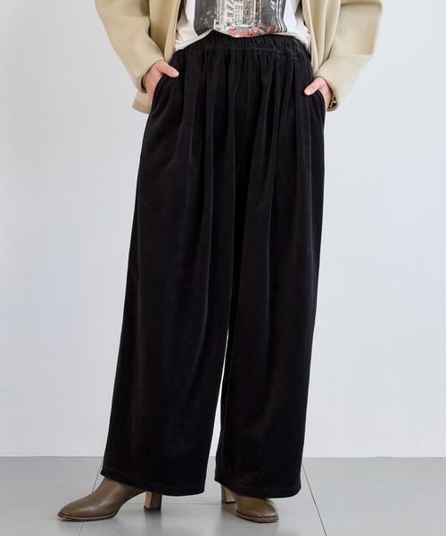 イージーな着心地の洒落見えベロアパンツ ・ウエストゴム仕様のベロアパンツ ・イージーな着心地ながら大人こなれ感が出るアイテム ・絶妙にテーパーをかけたシルエットで、着ると洒落見えするバランス ・トレンド感のあるカジュアルスタイリングが決まります 【スタイリング】 ゆったりとしたトップスと合わせると、リラックス感のあるスタイリングが楽しめます。 ショート丈のトップスと合わせるとボトムがメインのスタイリングなり、トレンド感のあるスタイリングに。 【素材】 お手入れ方法:マシンウォッシャブル コットンがちのベロア素材で、目立った光沢がないのが特徴。 ジャージなので、伸縮性もあり着心地も◎ --------------------------------- 透け感:透けない 伸縮性:あり 生地の厚さ:普通 裏地:なし ※こちらは参考情報となります。カラーにより多少の誤差がございます。 ※グレーで計測しています。 --------------------------------- 【原産国】 中国 お買い物をお得にもっと楽しく!上手な活用方法>>> ▼商品のお気に入り登録▼ 完売カラーの再入荷通知や、ラスト1点の通知、プライスダウンしたセール通知も受け取ることができます。 ▼ブランドのお気に入り登録▼ 新作や再入荷等、いち早くブランドのお得な情報を受け取ることができます。 【ご注意】 ※屋外の光や照明の当たり具合で、実際の商品の色味とカラー別画像の色味に若干の違いが発生する場合がございます。 詳細画像と併せてご確認の上、ご注文いただきますようお願い致します。 ※サンプルにて撮影をしておりますので、実際の商品とは色味・仕様や加工・サイズ等が若干異なる場合がございます。 予めご了承くださいませ。