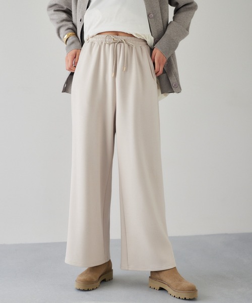 ソフトで暖かくリラクシーな裏起毛ワイドパンツ・寒い季節に嬉しい裏起毛のワイドパンツ・ソフトな生地感は着心地抜群でつい手に取りたくなる一枚・綺麗なシルエットにもこだわり大人カジュアルに着こなせます・オールウエストゴムでリラクシーな着心地・ゆったりしたサイズ感で体のラインを拾わないのも嬉しいポイント【スタイリング】裏起毛バック切り替えプルオーバーとセットアップでもお楽しみいただけます。ゆとりのあるシャツを羽織って、インナーにロゴカットソーを入れた大人リラクシースタイルもおすすめ。【素材】お手入れ方法:マシンウォッシャブル柔らかくて軽く、裏起毛になっており、着心地はとてもソフトな仕上がりです。---------------------------------透け感:透けない伸縮性:あり生地の厚さ:普通裏地:なし※こちらは参考情報となります。カラーにより多少の誤差がございます。※アイボリーで計測しています。---------------------------------【原産国】中国お買い物をお得にもっと楽しく!上手な活用方法>>>▼商品のお気に入り登録▼完売カラーの再入荷通知や、ラスト1点の通知、プライスダウンしたセール通知も受け取ることができます。▼ブランドのお気に入り登録▼新作や再入荷等、いち早くブランドのお得な情報を受け取ることができます。【ご注意】※屋外の光や照明の当たり具合で、実際の商品の色味とカラー別画像の色味に若干の違いが発生する場合がございます。詳細画像と併せてご確認の上、ご注文いただきますようお願い致します。※サンプルにて撮影をしておりますので、実際の商品とは色味・仕様や加工・サイズ等が若干異なる場合がございます。予めご了承くださいませ。