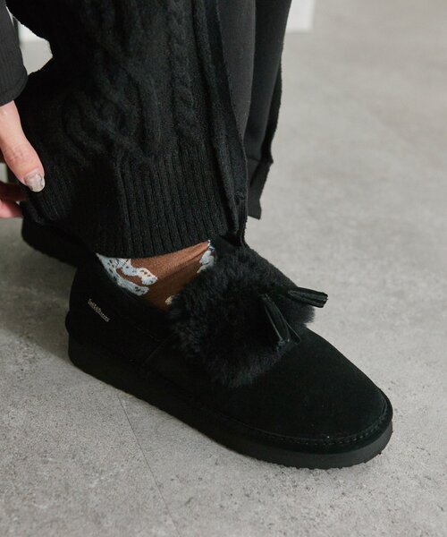【L.B.Evans(エルビーエヴァンズ)】 L.B.Evantsは220年以上前、アメリカ・マサチューセッツ州でエヴァンズ兄弟が創業。 手作りの高品質で快適な靴が評判となり、1804年に販売をスタートさせる。 品質と快適さのこだわりを、L.B.エヴァンズが受け継ぎ、数々のブランドの靴のデザインや生産を手がけながら、時代に合わせた挑戦を続けている。 2025秋冬モデルモカシンデザインが、日本別注モデルとして登場! ■ポイント ・ベロ部分にはシープスキンを使用し、スエードのフリンジがアクセントになっています。 ・幅広いスタイルに対応するシンプルで軽やかなデザイン ・2枚構造の取り外し可能インソール 取り外し可能なインソールが2枚入りなので、サイズ調整が簡単! 厚手のソックスを履く日には、薄手インソールを外して0.5cm調整可能。薄手のインソール1枚だけでも使用可能。 インソールは手洗い可能なので、いつでも清潔に保てます。 ・撥水機能付き。撥水加工を施したアッパー素材を使用しているので、小雨でも安心して履けます。 ※完全防水ではなく撥水仕様となっております。 そのため、大量の水がかかったり長時間の雨に打たれる、雪道や深い水たまりに入ると、水が靴内部に入り込む可能性がございます。 ※ファー部分は撥水ではありません。 ■仕様追記 重量(片足):299g ソール厚(最大):3cm インソール:2枚構造