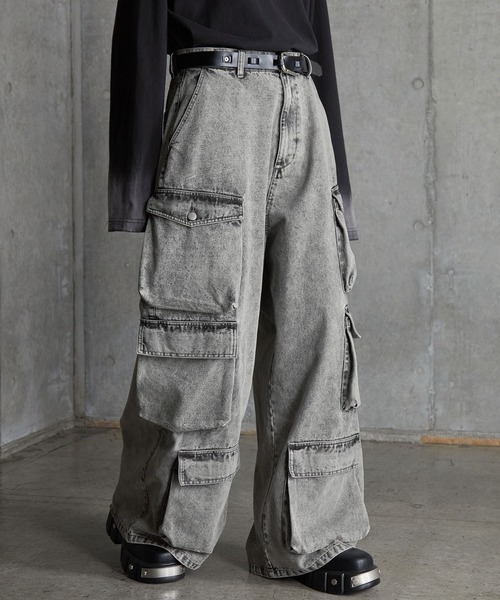 -【SERACE】New Item Release -立体的なカーゴポケットを大胆に配置した、存在感抜群のスーパーワイドデニムカーゴパンツが登場。ヴィンテージ感のある色落ち加工と、裾にゆとりを溜めて穿く絶妙なボリュームシルエットで、スタイリングにモードな迫力をプラス。全ポケットをマチ付きで仕上げた重厚なディテールと、10.5ozデニムの軽やかな履き心地を両立した一本です。■POINT・左右に3つずつ配置した存在感あるマチ付きカーゴポケット・最上段は釦付きフラップ、下2段は釦なしフラップでデザインに強弱をプラス・一番下のポケットは正面に来る絶妙な位置設計で立体感を強調・ボリューム感あるスーパーワイドで韓国ストリートにも馴染むシルエット・裾に少し溜めて穿くことでこなれたモード感を演出・10.5ozデニムで軽さと立体感を両立、通年で着用可能・BIO → ブリーチ → ケミカルの3工程加工で仕上げた深みのある色味■attentionこの製品は着用により他の衣類等に色が付着する事があります。他の衣類に色が移った場合は、着用した衣類の取り扱い表示に従ってください。雨や汗などで濡れた場合や摩擦により淡い色のベルトやバッグ等に色移りしますので、こ注意ください。洗濯の際は色落ちしますので、単独洗い後に直に干してください。摩擦により他の衣頃に色が移る事がありますので,淡い色との重ね着にはご注意ください。タンプル乾燥機は使用しないでください。蛍光増白剤配合洗剤、漂白剤は使用しないでください。クリーニングをする場合は付属部分の色泣き(色のにじみ)を防ぐため、保護カバーをご使用ください。クリーニングの際に多少色落ちする事がありますので、速やかに処理する事をお勧めいたします。■動画着用モデルModel:175cm Size:L【SERACE】シンプルで落ち着いた佇まいの中に、ディテールと加工で“さりげない差”を生み出すブランド。日常に馴染みつつも、他と並んだ時にふっと光るスタイルを提案します。【商品のお気に入り登録】完売カラーの再入荷通知や、ラスト1点、セール通知を受け取れます。【ブランドお気に入り登録】新商品や再入荷などの情報をいち早くお届けします。