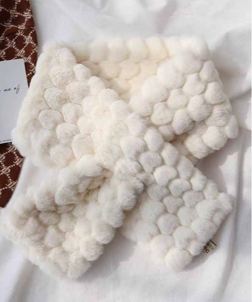 ふんわりとした立体的なデザインがかわいい、ジャガードボアマフラー♡ まるで"もちもち""ぽこぽこ"としたような独特のテクスチャーで、首に巻くだけでシーズンムードが一気にアップ。 柔らかく肌あたりの優しい素材を使用しているため、寒い日でもストレスなく着用できるあたたかさが魅力です。 差し込み式のデザインなので、くるっと巻くだけで形が決まりやすく、コーディネイトに程よいボリューム感をプラス。 軽量で持ち運びやすく、デイリー使いはもちろん、通勤・通学にも最適です。 ユニセックスで使いやすいカラー展開に、冬コーデに馴染むニュアンスカラーもラインナップ。 防寒性・デザイン性・肌触りのよさを兼ね備えているので、大切な人へのプレゼントにもおすすめです!! ■サイズ ・約80cm×13cm ■カラー ・オフホワイト/ピンク/グレー/ベージュ ■素材 ・ポリエステル ●お気に入りでお得を逃さずに!! ・ハートマークをクリック! セール、ラスト1点、再入荷などお得な情報を受取ることができます。 -ALWAYS GOOD TIME SELECT- 長年に渡って愛され続けたWEARやGOODS、今を構築するWEARやGOODS。 ファッションカルチャーの歴史にフォーカスし現代的にセレクトし提案するセレクトショップ。 ※着用画像はあくまでもイメージであります。 実際の着用感・見え方と異なる場合がございます。予めご了承をお願いいたします。 ※サイトに表示されているカラー名と実際のお届け商品に記載されているカラー名が異なる場合がございます。 ※店頭及び屋外での撮影画像は、光の当たり具合で色味が違って見える場合があります。 またご覧いただきますモニターや使用環境により実際の商品と多少色味が異なって表示される場合がございます。 予めご了承をお願いいたします。