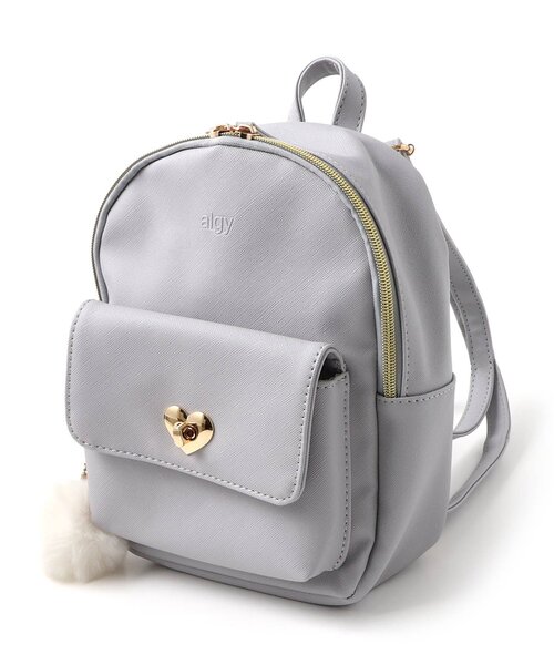 取り外しできるファーチャームがついたミニリュック*。・フロントポケットのハートロックもポイントに。生地がしっかりしているので型崩れしにくく上品なデザインでギフトにも喜ばれるアイテムです。商品サイズ:縦255㎜、横195㎜、奥行95㎜※商品により多少の誤差が生じる事がございます。あらかじめご了承下さい。※ご使用のパソコンやブラウザの環境により、実際の色とは多少異なる場合がございます。※モデル着用写真についてはイメージの為、実際の商品とカラーや仕様が異なる場合がございますので、商品画像をご覧ください。【 algy ーアルジー ー 】”おしゃれを楽しみたいティーンズのリアルクローズ”着たい 欲しい トレンド・・・全部そろう小中学生向けブランドです。▼気になる商品をお気に入り登録ハートマークをクリックして『お気に入り登録』がオススメです!商品のお気に入り登録をすると、[再入荷][残り1点][セール情報]を受け取れます。また、『F.O.Online Store』を、お気に入り登録すると[新作アイテム][再入荷]の情報をいち早く受け取れます♪