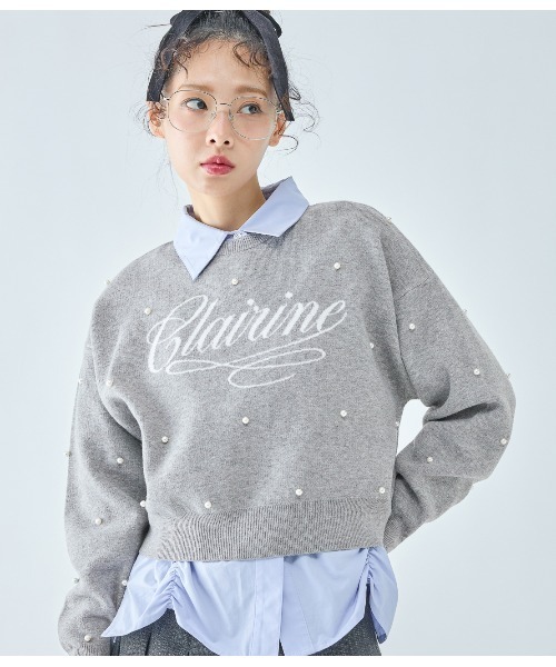 昨年も人気だったメッセージロゴとパールが特徴的なニットトップス。ゆったりしたシルエットでスウェットのように着やすいデザインでありながら、カジュアル過ぎずに着こなせるアイテム。袖と前身頃にパールが散りばめられたデザイン。