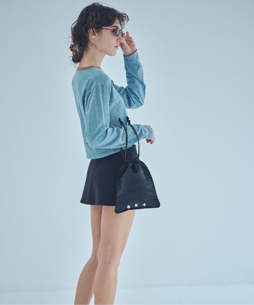 上品な光沢感をもった厚手でハリのあるサテンを採用した巾着。 SEAのボタンでキャッチーな遊び心をプラス。 STRAWBERRY MILKが新登場。