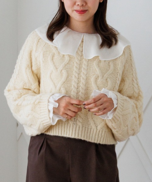 ■デザインふわふわとした柔らかい糸を使用した、大きめのアラン編みが特徴的なニットトップス♪ハートの形の編み柄がとってもキュート♡カジュアルにはもちろん、ガーリーなスタイリングとも合わせやすい一枚です。袖にはふんわりとボリュームをつけて女性らしい丸みのあるシルエットに♪何にでも合わせやすい優しい色味のLemon yellowと、ホリデーシーズンにぴったりなRedをご用意しました。デイリー使いやデート、イベントなど幅広いシーンで活躍します。■おすすめコーディネートフレアスカートとの合わせがおすすめ♡fluffy tulle skirtのような表情のある素材のボトムスとも相性抜群です。■flower/フラワー「love&joy」をコンセプトに、商品に愛を込め、お客様に楽しんでいただけるような、ナチュラルでガーリーなアイテムを提案していきます。【お買い物を上手にお楽しみいただくためのPOINT2つ】◎ 購入ボタン横の ♡ (ハートマーク)をクリック! 完売カラーの再入荷通知、残り1点の通知、セールの通知を受け取れます。 (クリックまたはタップで商品のお気に入り登録♪)◎ ショップのトップページにある ♡ (ハートマーク)「お気に入りショップに追加」をクリック! 新商品や再入荷等、いち早くブランドのお得な情報を受け取れます。 (ブランドのお気に入り登録♪)