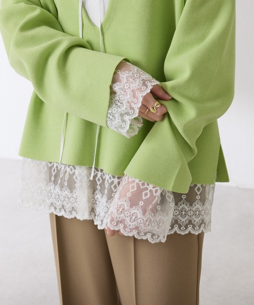 トレンドのレイヤードスタイルに新鮮さをプラス◎【POINT】・程よくとろみのある素材のブラウスに刺繍レースを合わせた異素材合わせがポイントのシャツ。・冬のニットスタイルを新鮮に魅せつつ、1枚でも着映えするデザインに仕上げました。・カジュアルにも取り入れやすいよう、レース部分は甘く見えないデザインにこだわりました。・細めのタイのような首元のコードが上品な印象を演出してくれます◎【おすすめコーディネート】スラックスやジャケットと合わせてクリーンなオフィススタイルもおすすめです。デニムパンツやロンパースに合わせた爽やかな大人カジュアルも素敵です。【おすすめのスタイリングアイテム】・ウールライクストレートパンツ CLZ1061102A0001・Vネックバスクニット CLZ1061105A0003・タックワイドチノパンツ CLZ1061102A0003【素材】本体:再生繊維(セルロース) 100%別布:ナイロン98%、ポリウレタン2%刺繍糸:綿100%透け感:ホワイトのみあり裏地:なし伸縮性:光沢感:なしおすすめ着用時期:秋、冬、春洗濯:手洗い可【気になる商品は「お気に入り」登録を】 ハートマークをクリックし、お好きなカラーを選んでお気に入りに登録すると入荷情報や残り1点の通知、完売カラーの再入荷、セール情報などを受け取ることができます。※撮影場所やお使いのモニター環境により若干お色味が異なる場合がございます。特にロケの撮影では明るく見える傾向にございます。詳細撮影画像で色味をお確かめくださいます様お願いいたします。※サンプルで撮影をしております。若干の仕様が変更になる場合がございますので予めご了承の上ご注文くださいますようお願いいたします。※サンプルでの採寸のためあくまで目安となります。予めご了承ください。≪返品・交換について≫・着用後、洗濯後の返品・交換は致しかねます。・商品到着後、着用前に商品状態のご確認をお願い致します。