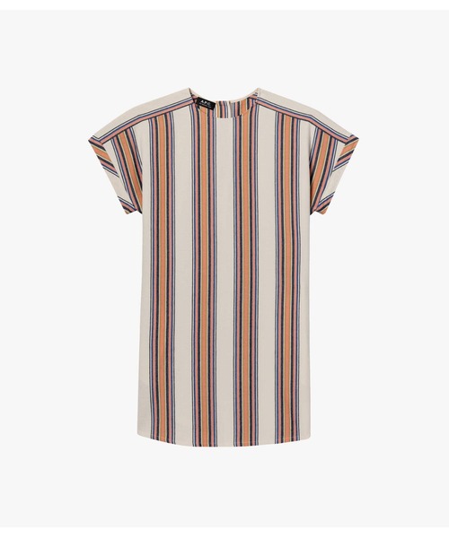 マルチカラーストライプ入り生成のコットンワンピース.*ルーズフィット. *膝上丈. *ラウンドネック. *ショート、ワイドスリーブ.