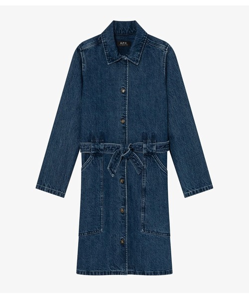 ウォッシュドデニムのワンピース.*ストレートカット. *ウエストベルト付. *アンクル丈. *ボタンダウンカラー. *フェイクホーンボタン開閉.