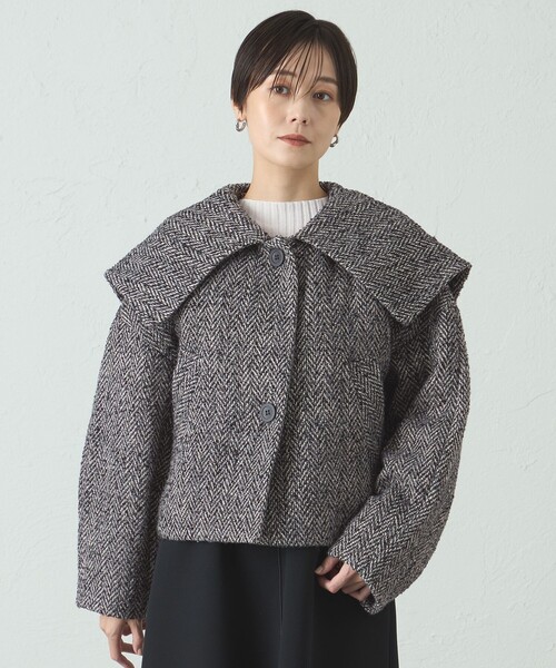 【CAST:キャストコロン 2025年秋冬アイテム】 【Design】 大きめの襟デザインがキャッチーなショートコート。 温かみのあるツイード生地で、モダンな雰囲気が漂います。 後にタックを取ることで全体的に丸いシルエットが表現されています。表地と裏地の間に薄く中綿を入れているので保温性も抜群です。 【Fabric】 独特なツイード素材に、現代的な軽やかさを兼ね備えたウール混ツイード素材。大きめのヘリンボン柄が印象的で、冬のコート素材として存在感を放ちつつ、過度に派手にならない絶妙なバランスを実現しています。 【Styling】 1枚でサマになるデザイン。 ●洗濯:手洗い不可 透け感:なし 伸縮性:あり 生地の厚さ:厚い おすすめ着用期間:秋、冬 ※この商品はサンプルでの撮影を行っています。 実際の商品とイメージ、サイズ、品質表示、原産国等が異なる場合がございます。 ※店頭及び屋外での撮影画像は、光の当たり具合で色味が違って見える場合があります。商品の色味は、スタジオ撮影の画像をご参照ください。