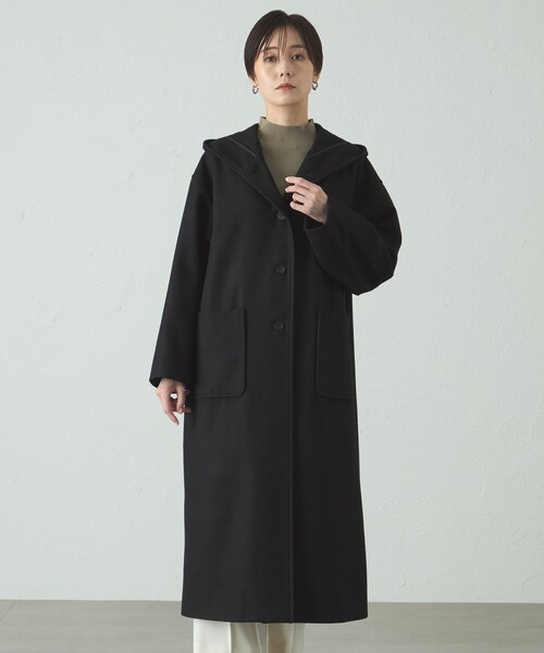 【CAST:キャストコロン 2025年秋冬アイテム】 【Design】 ウールのメルトン素材を使用したフード付きロングコート。 ロング丈でインパクトがありながら、フードがあることで柔らかい印象に。 配色ボタンがデザインポイント。ボタン位置を敢えて上に設定することで、ロング丈でもすっきり見えるようにデザインしました。 1枚で防寒性・デザイン性を兼ね備えたコートです。 【Fabric】 尾州産地における染工場の中で一番歴史があり、メルトン仕上げが得意な工場で仕上げました。 ハリコシがあり、品の良い仕上がり。 横糸にスーパー110S原料を使用することでメルトン仕上げでありながら適度な光沢感と肌さわりの良さがあります。 縮絨をしっかり入れることで程よい肉感になり、着た時に重すぎないメルトン素材になっています。 【Styling】 1枚でサマになるデザイン。パンツスタイルでもスカートスタイルでも合わせやすいデザインです。 ●洗濯:手洗い不可 透け感:なし 伸縮性:あり 生地の厚さ:厚い おすすめ着用期間:春、秋、冬 ※この商品はサンプルでの撮影を行っています。 実際の商品とイメージ、サイズ、品質表示、原産国等が異なる場合がございます。 ※店頭及び屋外での撮影画像は、光の当たり具合で色味が違って見える場合があります。商品の色味は、スタジオ撮影の画像をご参照ください。