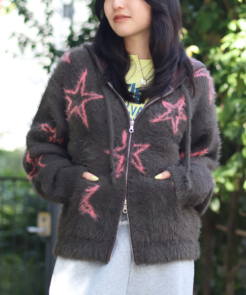 好評のフェザーヤーンが今季ブラッシュアップし、ジャガードZIPフーディとして登場。柔らかな毛足によるふわふわの肌触りが魅力です。ニットアウターとしてブルゾン代わりに、肌寒い時期に軽く羽織れるのも嬉しいポイント。ブルゾンやシャツジャケットとのレイヤードで、フードをアクセントにしたスタイリングもおすすめ。レオパード柄と星柄のダブルジャガードは、JOINT WORKSオリジナルの特別なデザインで、存在感抜群の一枚です。※取り扱いについては、商品についている取扱表示にてご確認下さい。※照明の関係により、実際よりも色味が違って見える場合があります。※またパソコン・スマートフォンなどの環境により、若干製品と画像のカラーが異なる場合もございます。※商品の色味は、商品アップ画像をご参照ください。グレー・ブラウン着用スタッフ:157cm 着用サイズ:フリー詳細着用スタッフ:162cm 着用サイズ:フリー本体:ドライクリーニング