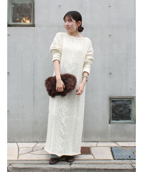 表情のある透かし柄が目をひくニットワンピース ■デザイン くるくるとしたブークレ糸で透かし柄が立体的に女性らしい印象で表現されているのがポイントです。 比較的軽くダレ感も少ないので型崩れしにくくなっています。 袖口と裾は天竺ロールでラフさをプラスし、袖口は長めのリブで手首にフィットさせくしゅっとたまるデザインです。 ■生地感 柔らかいブークレ糸を使い着心地の良い肌触り。 編地に立体感と表情を出し今っぽい仕上がりに拘っています。 ■サイズ感 ストレートのボディシルエットはすっきりとしつつ 程よくスリムで身体のラインを拾わないサイズ感。 ■スタイリング インナーを着て1枚でワンピースとしても、ワイドパンツやデニムとレイヤードする着こなしもおすすめ。 ・・・・・・・・・・・・・・・・・・・・・・ 透け感:なし 裏地:なし 伸縮性:あり 光沢感:なし 生地の厚さ:普通 ・・・・・・・・・・・・・・・・・・・・・・ ※商品画像はサンプルのため、色味やサイズ、素材の混率等の仕様に 変更がある場合がございます。予めご了承ください。 ※生地寄り画像を正規の商品の色味に近づけております。 ■商品のお気に入り登録 再入荷通知やラスト1点、お得なプライスダウンの情報も受け取ることができます。 ぜひご登録ください◎