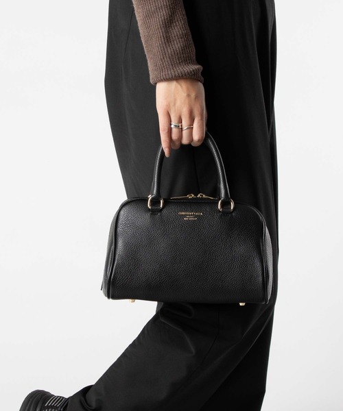 上質なグレインレザーが引き立てるクラシックなフォルム。デイリーユースに最適な2WAYミニボストン。イタリアのバッグブランド、CHRISTIAN VILLA(クリスチャン ヴィラ)の「PEGGY(ペギー)」は、クラシックなミニボストン(ボーリングバッグ)のフォルムを、きめ細かなグレインレザーで上品に仕上げたバッグです。コンパクトながらも存在感があり、その洗練されたデザインは、持つだけでコーディネートをクラスアップします。デザインと特徴クラシックなミニボストンフォルム:丸みを帯びた横長のボストン型シルエットが特徴。トップハンドルが付いており、可愛らしく上品なハンドバッグとして活躍します。マチがしっかりあるため、自立しやすく、中身の整理がしやすい構造です。上質なグレインレザー:アッパーには、きめ細かな**グレインレザー(シボ革)**を使用(画像参照)。柔らかな質感ながら、傷や汚れが目立ちにくい耐久性を持ち合わせています。実用的な2WAY仕様:ショルダーストラップが付属しており、クロスボディや肩掛けも可能な2WAY仕様。両手を空けたい時やカジュアルな装いにも対応します。ストラップを接続する金具には、デザインのアクセントとなるチャーム付きのゴールドチェーン(画像参照)を使用しています。ゴールドのアクセント:ファスナー、ハンドル付け根の金具、ストラップ金具にゴールドを採用。グレインレザーの質感と相まって、上品な高級感を添えています。フロント中央には、さりげなくゴールドでブランドロゴが刻印されています。スタイリングのヒントきれいめカジュアル: 休日のお出かけに。ニットやブラウスに合わせ、トップハンドルで持てば、女性らしい雰囲気に。トラッドミックス: マニッシュなパンツスタイルに、ショルダーストラップでクロスボディにすれば、カジュアルすぎない大人のミックススタイルが完成します。汎用性: コンパクトで品があるため、ちょっとしたパーティーや会食などのオケージョンにも対応できます。Christian Villaミラノで革に情熱を持つ家族に育ったChristian Villaは、ファッションデザインの修士号を取得後、2010年に自身のバッグコレクションを発表。クラシックな形状と現代的なデザイン、エレガンスと魅力的なタッチを完璧に融合させています。イタリア製の高品質な原材料と伝統的な職人技にこだわり、洗練された女性のために細部まで配慮した高級バッグを提供しています。※同一商品であっても仕様が変更される場合がございます。《お買い物をよりお楽しみいただくために》◆商品のお気に入り登録♪ハートマークをクリックすると完売カラーの再入荷や、ラスト1点の通知、セールの際の通知を受ける事ができます。◆ブランドのお気に入り登録♪新商品や再入荷などの情報を受け取ることができます!是非ご登録ください♪