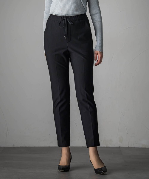 【デザインの特徴】肌にあたる部分をキュプラ素材に切り替えた、裏起毛ハイテンションのジョグパン。やわらかなタッチで心地よく、暖かさを感じながらもムレにくいのが魅力です。ほどよい伸縮性が動きにフィットし、長時間の着用もストレスフリー。ジョグパンならではのリラックス感はありながら、すっきりとしたラインでカジュアルすぎず、大人のきれいめスタイルにもマッチします。デイリーにも旅にも活躍する、頼れる一本です。【機能性】◆Easy Careご自宅でのお手入れが簡単◆保温性◆2WAYストレッチ【素材の特徴】吸湿発熱機能があり、ムレにくく快適に着用でき、非常になめらかなタッチが特徴の国産トリコット素材になります。キュプラを使用することにより裏起毛部分の肌触りが非常によくやみつきになる着用感です。適度なハリ感もありますので体のラインをを出しにくく安心して履くことができ、なによりもタテヨコに非常によく伸びますので快適に着用していただけます。----------------------------------------------------------------洗濯方法家庭洗濯:液温は30℃を限度とし、洗濯機で非常に弱い洗濯ができる。自然乾燥:日陰の吊り干しがよい。アイロン:底面温度120℃を限度としてアイロン仕上げができる。ドライクリーニング:石油系溶剤による弱いドライクリーニングができる。----------------------------------------------------------------※画像の商品はサンプルとなりますので実際の商品と仕様、加工、サイズが若干異なる場合がございます。※お客様のモニター環境により実際のお色と多少異なる場合がございます。※撮影状況や光の当たり具合により、色合いが異なって見える場合がございます。※商品タグに記載されたサイズはヌードサイズです。実際の商品のサイズは商品情報の実寸をご確認ください。--------------------------------------------------------------------▼商品のお気に入り登録ハートマークをクリックし、お好きなカラーを選んでお気に入りに登録完売カラーの再入荷通知や、ラスト1点の通知、セールの通知も受け取ることができます。▼ブランドのお気に入り登録新商品や再入荷等、いち早くブランドのお得な情報を受け取ることができます。 --------------------------------------------------------------------