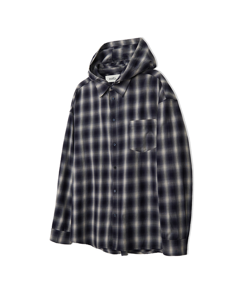 [フード脱着] チェックフードロングスリーブシャツ 2 COLOR COOSSH194