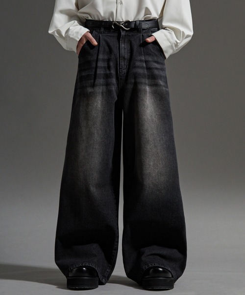 ◆素材◆本体には、綿100%の12ozデニム生地を採用。しっかりとした肉感を持つことで、ボリューム感を活かした重厚感のあるシルエットをしっかりとキープします。フラットでクリーンな表面感と、適度なハリとコシ感を持たせているため、ふんわりと立体的なシルエットを自然に演出。程よい肉感でありながら、着用時のゴワつきはなく、肌馴染みも良好です。穿き込むほどに体に馴染み、コットン特有のナチュラルな風合いと、味わい深い経年変化による表情の変化も存分に楽しめます。また、各カラーによって異なるヴィンテージ加工を施すことで、古着のようなヴィンテージライクな表情に仕上げました。◆ディテール/シルエット◆今のトレンドを凝縮した圧巻のボリュームバギーシルエットが魅力。無骨さとモード感を兼ね備え、計算されたドレープ感と、腰元から生まれるボリュームが、穿くだけで主役級の存在感を発揮します。深く入った大胆なタック使いが迫力あるワイドなシルエットを構築し、動きのある表情を生み出し、膝から緩やかに広がる計算された美シルエットは脚長効果も期待できます。さらに、前面がフラットなハイウエスト設計はタックインスタイルを美しく見せ、裾のボリュームがトレンドのダボっとした着こなしを徹底的に追求。艶を抑えたシルバーボタンがクリーンなモード感をプラスします。◆カラーパターン/サイズ◆今っぽい加工感を感じられるマストなベーシックなブラック、グレー、ブルーの3色をご用意。各カラーによって異なる加工が加わり、こなれたヴィンテージ感を演出。ラフなスタイルにおすすめのS~Lまで揃えた豊富なサイズバリエーションにてご用意しております。◆プライス・コーディネート◆素材やシルエット、穿き心地、使いやすさにこだわり、高いコストパフォーマンスを実現した特別な1本です。この主役級のボリュームデニムは、重厚感のあるストリートモードな着こなしに最適。無地のTシャツやシャツにオーバーサイズのジャケットやカーディガンを合わせればクリーンなモード感を、ヴィンテージ加工のスウェットやカットソー、パーカーでストリート感を強調するなど、様々なトップスと好相性。足元は、ボリュームシルエットを活かすブーツや厚底シューズ、ゴツめのスニーカーとの組み合わせが特におすすめで、季節を問わず多様な着こなしが楽しめる優秀なアイテムです。【ご使用上のお願い】・この製品は着用により他の衣類等に色が付着する事があります。・他の衣類に色が移った場合は、着用した衣類の取り扱い表示に従ってください。・雨や汗などで濡れた場合や摩擦により淡い色のベルトやバックル等に色移りしますので、ご注意ください。・洗濯の際は色落ちしますので、単独洗い後に直に干してください。・摩擦により他の衣類に色が移る事がありますので、淡い色との重ね着にはご注意ください。・タンプル乾燥機は使用しないでください。・宝光増白剤配合洗剤、漂白剤は使用しないでください。・クリーニングをする場合は付画部分の色泣き(色のにじみ)を防ぐため、保護カバーをご使用ください。・クリーニングの阳に多少色落ちする事がありますので、速やかに処理する事をお舗めいたします。◆推奨着用サイズ◆Sサイズ:~170cmMサイズ:171cm~175cmLサイズ:176cm~※実際の商品とサイズが若干異なる場合がございます。※日光や照明等に長時間当たると色褪せしますので、ご注意下さい。※保管の際は窓際等を避けてください。※撮影画像は、光の当たり具合で色味が多少異なって見える場合があります。商品の色味は、スタジオでの詳細画像をご参照ください。※末永く愛用頂く為に、アテンションタグ・洗濯ネームを必ずご確認の上、着用又はお取り扱い下さい。-cussil/クシル-自分らしさを知らない、また知っている人でも新しい自分になれる・発見できるスタイルを提案。⠀内に秘めた輝きを持つCuS " covellite " のように⠀本来のあなたを見出せる存在に。