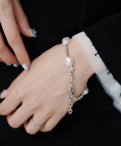 手元にそっと華やぎを添える、異素材ミックスの上品ブレス■デザインメタルビーズと小花モチーフ、バロック風パールを組み合わせた、華奢ながらも存在感のあるチェーンブレスレット。異素材のリズムが手元を動かすたびにきらっと映えて、ワンポイントで抜け感と可愛さを添えてくれます。アジャスター付きでサイズ調整しやすく、ニットの上からでも素肌の上でもバランスよく馴染む万能デザイン。▼関連商品パール×フラワーチェーンネックレス【KAF1052418A0001】ーーーーーーーーーーーーーーー【 fiw. 】-fit in with.-日々に溶け込むアクセサリー毎日移り変わるわたしたちの気分にあわせて、寄り添うように側にいてくれるパートナーのような存在。気づけば身体の一部になっていて欠かせないもの。シンプルながらも静かに輝く、肌馴染みのよいアクセサリーを集めました。沢山の表情の中から、自分らしくいられるお気に入りの1点を、是非見つけてください。ーーーーーーーーーーーーーーー【お取り扱いの注意】※着用時、洗濯時は必ず取り扱い表示・タグをご確認の上、お取り扱いください。※サイズ採寸は各モールによって異なり、多少の誤差が生じる可能性がありますのでご了承ください。※商品画像はサンプル品を使用しているため、実際の商品と仕様、加工、サイズが若干異なる場合がございます。また、可能な限り実物に近いカラーにて掲載していますが、使用しているパソコンのモニター設定や、携帯電話のメーカー・機種により実際のカラーと異なって見える場合がございます。予めご了承ください。▼商品のお気に入り登録ハートマークをクリックし、お好きなカラーを選んでお気に入りに登録完売カラーの再入荷通知や、ラスト1点の通知、セールの通知も受け取ることができます。▼ブランドのお気に入り登録新商品や再入荷等、いち早くブランドのお得な情報を受け取ることができます。<返品・キャンセルについて>・着用・洗濯後の返品・ご交換は致しかねます。・商品到着後、着用前に商品を確認して頂きますようお願い致します。