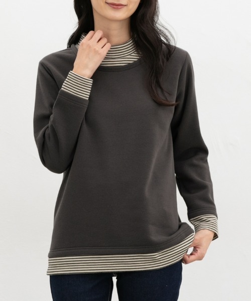 ソフトであったか『ハニぽか』トップス 【デザイン】 インナーをちら見せしたようなレイヤード風デザイン。 首元まであったかなハイネック。 すっきりめの幅と腰回りが隠れる丈感。 【素材・機能】 軽くてソフトな肌触りの綿混素材。 裏起毛素材であたたかな『ハニぽか』アイテム。 【スタイル】 デニムやガウチョパンツなどと合わせた、ナチュラルなカジュアルコーデに大活躍。 普段使いはもちろん、おうちでのリラックスウェアとしても◎ 品番:585-11-9828