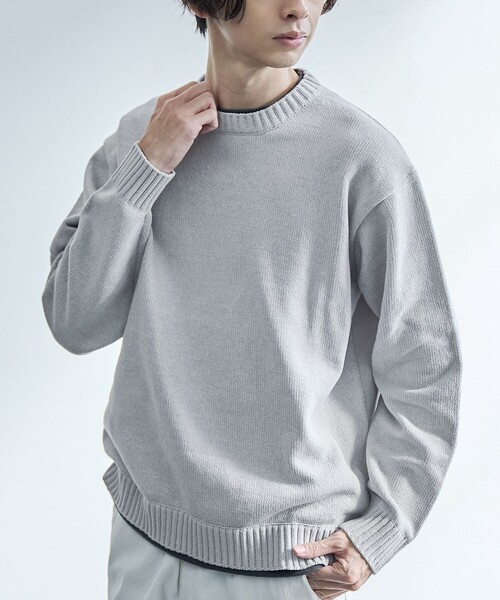 一枚で“重ね着風”を楽しむ、洗練ニット■デザイン/素材レイヤードスタイルを一枚で叶えるフェイクレイヤードニット。異素材使いのネック部分には、風合いの良いポリエステル糸を採用し、首まわりの快適さにもこだわりました。身頃には太番手のポリエステルモール糸を使用し、プレーティング天竺編みで仕上げることで、生地にしっかりとした安定感をプラス。さらに、ご家庭の洗濯機で簡単にお手入れできるのもうれしいポイントです。透け感:なし生地の厚さ:普通光沢感:なし家庭洗濯:可能(ネット使用)【注意点】※撮影商品はサンプルの為、実際の仕様と異なる場合がございます。※画像の商品は光の照射や角度、お使いのモニター環境により、実物と色味が異なる場合がございます。スタジオ物撮りの画像が実物の色味に一番近くなっております。※予約商品の場合、お届け予定はあくまでも目安となります。生産の都合上、お届け時期が前後したり実店舗入荷時期とずれる場合がございますので、あらかじめご了承ください。品名:フェイクレイヤードモールニット品番:75306000002