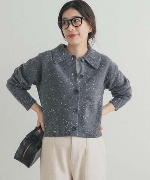 レトロ可愛いネップヤーン衿付きニットカーディガン暖かみのあるネップヤーンが魅力の、レトロで可愛いニットカーディガン。ふんわりとした編地が表情豊かで、秋冬らしい季節感をさりげなく演出します。ざっくりとした素材感ながら、全体のシルエットはコンパクトにまとめており、今季注目の衿付きデザインがスタイルに程よいアクセントをプラス。羽織るだけでこなれ感が出るため、いつものTシャツやデニムに合わせるだけでコーデが完成する万能アイテムです。カジュアルスタイルはもちろん、スカートやワンピースなど女性らしいアイテムとの相性も良く、様々な着こなしに活躍。ほっこりとした雰囲気がありながらも、着ぶくれしにくいサイズ感でデイリーに使える一枚です。【2025 Autumn/Winter】【25AW】※この商品は、独特のデリケートな素材を使用しています。素材の特性上、ご着用やクリーニングを繰り返すことで、毛乱れが生じることがあります。※ご着用の摩擦などにより、多少の毛抜けや毛羽立ちが生じ毛羽が付着したり、毛玉(ピリング)ができることがあります。総重量 : 約415g※商品画像は、光の当たり具合やパソコンなどの閲覧環境により、実際の色味と異なって見える場合がございます。予めご了承ください。※商品の色味の目安は、商品単体の画像をご参照ください。▼お気に入り登録のおすすめ▼お気に入り登録された商品は、マイページにて現在の価格情報や在庫状況の確認が可能です。お買い物リストの管理にぜひご利用ください。素材感透け感 : なし伸縮性 : あり裏地 : なし光沢 : なしポケット : なしFREE