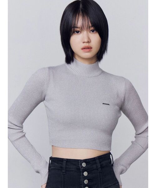 着回ししやすいベーシックなハイネックニット■デザインタイトなシルエットで上品な雰囲気で着ていただけます。ショート丈ですがハイネックなので、肌見せをしても上品な印象の仕上がりで大人も着やすいニットです。カラーは無地・ボーダー・ラメの展開。ボーダーは細ピッチで作成しており着やすい柄になっています。ラメはシルバーラメ糸を混ぜることでさりげなくコーデのポイントになります。■スタイリングショート丈なので、ハイウエストボトムの合わせがスタイルアップ効果抜群。バックグラフィティルーズジーンズのようなワイドボトムと合わせ、メリハリのあるバランスで着用していただくのもおすすめです。アウターのインナーまで使いやすいアイテムです。※着用画像はフラッシュの加減で実際の製品と色味等が異なる場合がございますので、生地のズームアップ画像をご確認ください。※ご利用の端末画面の設定により実際の商品と色味が異なる場合がございます。【商品特徴】透け感:なし伸縮性:ややあり生地の厚さ:普通サイズ感:細身裏地:なしポケット:なし