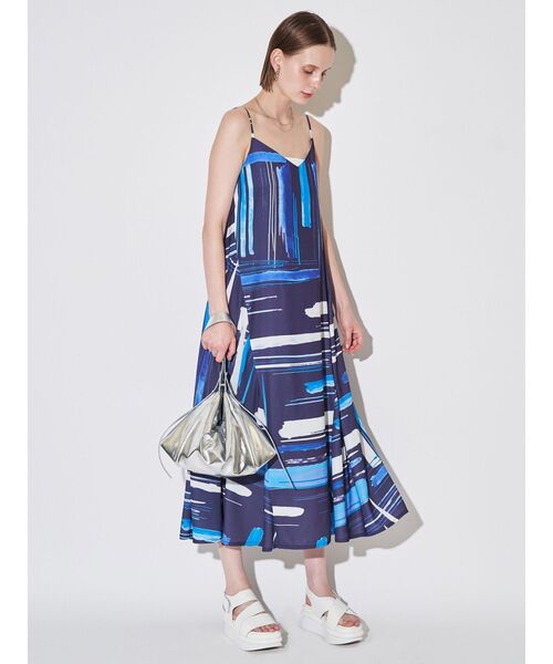 FLUID LINE CAMI OP 華奢な肩紐と首元のVカットが女性らしさを引き立てるキャミワンピース。 Vラインをやや高めに設定することで、レイヤードにも一枚着にも対応できる安心のデザインに。 裾にかけて広がるボリュームシルエットが、動くたびに華やかさを添える1着。 目を引くプリントは水彩インクが流れ出す瞬間を切り取ったような、繊細で有機的なラインが特徴のニュアンス柄。 にじみと重なりが生む揺らぎが、静けさの中に動きを感じさせる。 曖昧な線の重なりがリズムを描き、コレクションテーマのREFRESHに通ずる心地よい余白をもたらすテキスタイル。 ▼同素材展開シリーズ フルイドラインパンツ(品番:512610700901) ・・・・・・・・・・・・・・・・・・ 透け感:なし 裏地:あり 伸縮性:なし 生地の厚さ:普通 ・・・・・・・・・・・・・・・・・・【 お買いものにおすすめの便利機能! 】▽商品のお気に入り登録完売カラーの再入荷時や、ラスト1点の時、セール開始時にお知らせします。 ▽ブランドのお気に入り登録新商品や再入荷、セール情報など、いち早くブランドのお得な情報を受け取ることができます。ぜひご活用ください。 ※実際にお届けする商品と仕様やサイズが異なる場合がございます。また生産の都合上、お届け時期が前後する場合がございます。